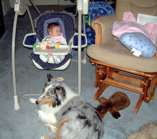 Our Blue Merle Sheltie was always guarding our Little Princess