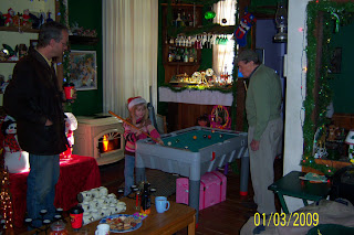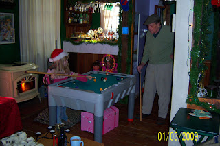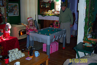 Papa loves to drive (and does it well in spite of his age! LOL!) so he really looks forward to being able to come visit us on the weekends when he is able – he used to come up once a week, even mowed our grass in the summertime because it made him ‘feel young’, but as his health has slowly started to fade, so have his trips – so we thoroughly enjoy them when we can. We visit him as much as we can in his retirement home, but he prefers coming here because it gets him away from, as he says, ‘the old people’. LOL! Here, for your enjoyment are some pictures of Pool Shark Papa playing pool with the Little Princess: