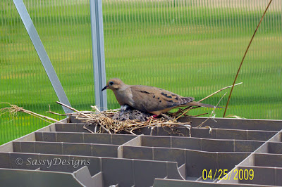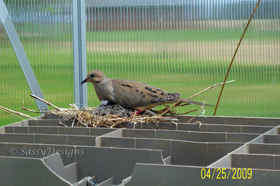 I have actually seen the baby dove hanging around the front grape arbor where I have a bird feeder hanging – the smaller birds toss seeds from it to the ground and the doves mac out on those seeds. It was fun seeing the ‘baby’ dove following the older doves around by air – I tried to get a picture but I think he/she was onto me from the previous photo shoots. 😉