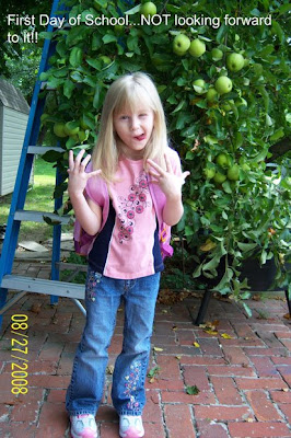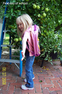 Love the pictures! She looked like she was excited to go! My little girl cried every morning not to go to school until I finally started homeschooling them. (This went on for 3 years — it was so very hard to leave her in her class but I worked at school so I knew she was ok)