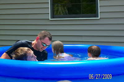 The kids have been keeping cool by swimming in the little pool that our friends just set up on Friday – Princess Nagger has been having a blast splashing around in it, she’s hard pressed to get out. Speaking of which, here they come now to jump in…too bad I didn’t bring a suit, I’d join them as it’s very hot at this moment!