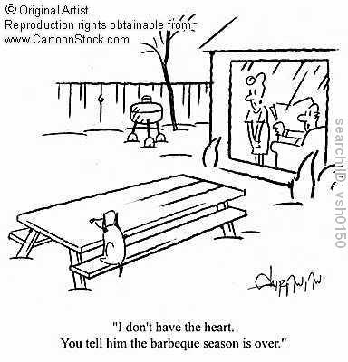 Since this is usually a big weekend for having a BBQ, it is important to refresh your memory on the etiquette of this sublime outdoor cooking activity . When a man volunteers to do the BBQ the following chain of events are put into motion: