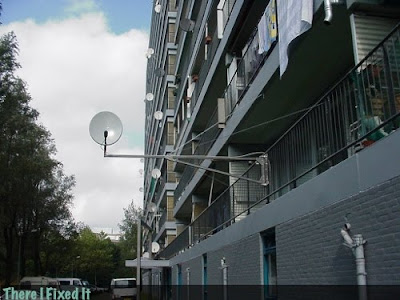 Hey, some of the repairs actually look pretty good. I'd say the toilet paper holder is effective (at least he was able to find a way!), and the steering wheel made of a ship's wheel is actually kinda cute. Haha~ That frat boys idea of a hot tub/pot is a total failure.