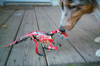 The wonderful Jenners (who is taking a bloggy break to spend quality time with her mom – HUGZ Jenners!) alerted me to the fact that there are these really cool things for kids that love dinosaurs… The “I Dig Dinosaurs” kits that they can spend hours of enjoyment pretending to be a Paleontologist and dig out dinosaur bones from a block of something. They can then put the skeleton form together and paint it and have a wonderful keepsake.